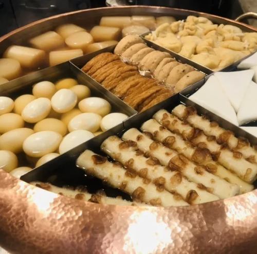 種類豊富な創作おでんをお楽しみいただけます!あごだしと鶏だしの2種類の出汁がしっかりしみ込んだおでんを、ぜひご堪能ください。